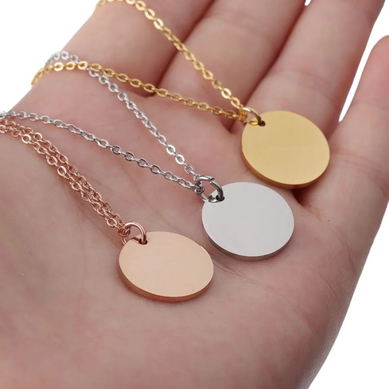The Circle Charm Necklace is a timeless piece that adds a touch of elegance to any outfit. Its smooth, circular pendant offers ample space for engraving, making it a personalized gift for any occasion. Crafted from durable stainless steel, this necklace is perfect for everyday wear or special events. Length: 45cm.